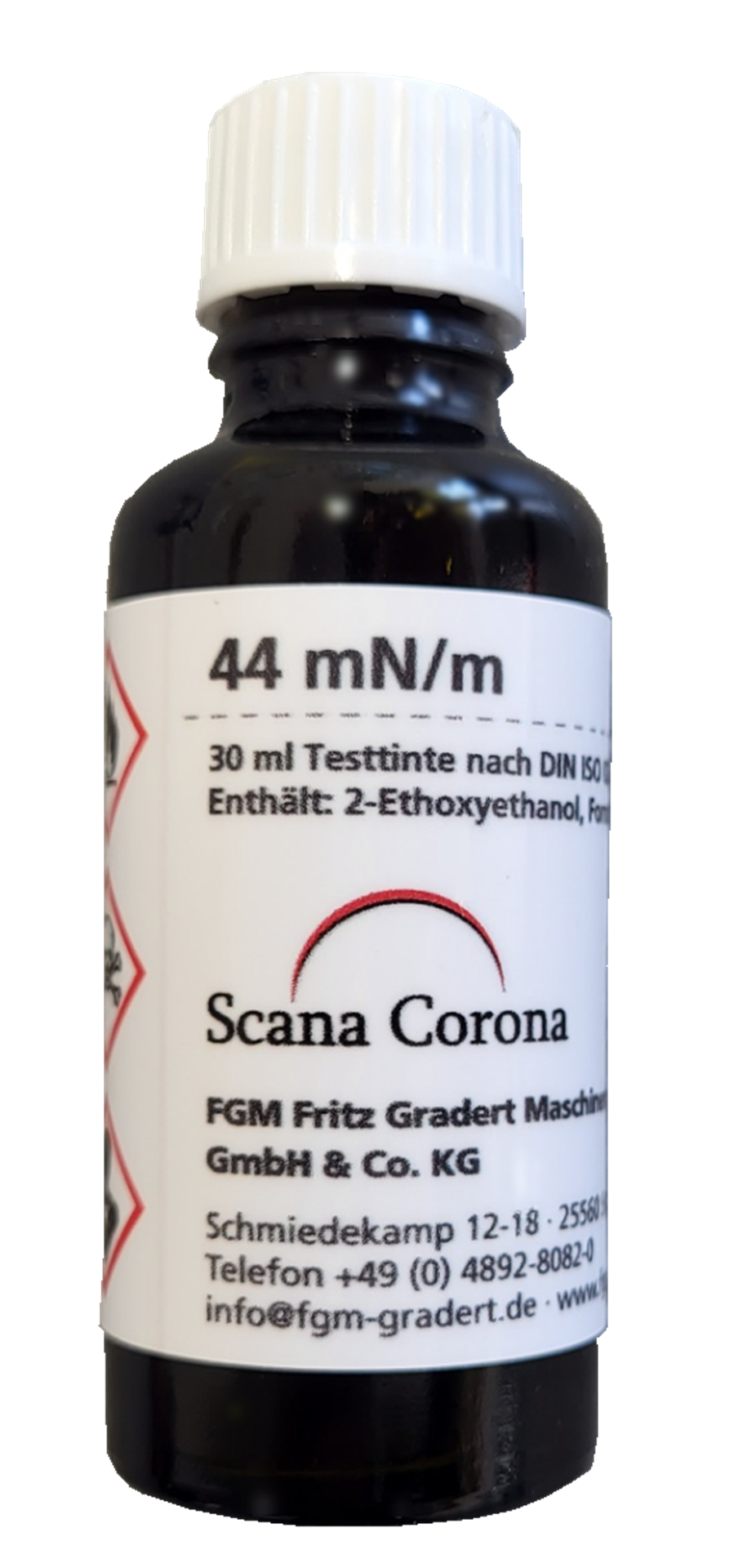 [Determining the surface tension per tint line with BOPP, here the result is ≥46 mN/m]